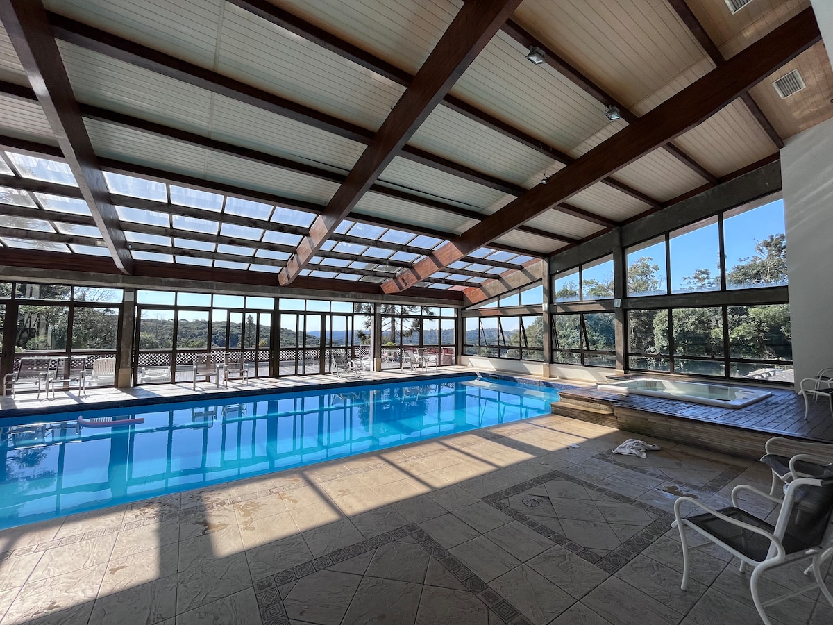 Apto in Canela with pool, sauna and fireplace