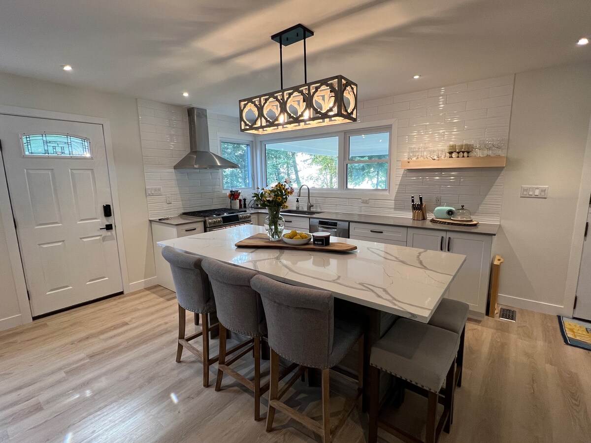 Velika udobna seoska kuća koja se nalazi u privatnoj četvrti Southcott pines u Grand Bendu savršeno je mjesto za 1-2 porodice. To je 5 minuta hoda do privatne pješčane plaže za zabavu na suncu i prelijepim zalascima sunca. Seoska kućica ima mnogo prirodnog svetla, uključujući prelepu sobu za sunčanje sa 3 sezone koja ima prozore na otvorenom kako biste uživali u jutarnjoj kafi ili večeri bez buba. Dostupnost ljeta 2025.: od 17. do 20. avgusta (3 noćenja)