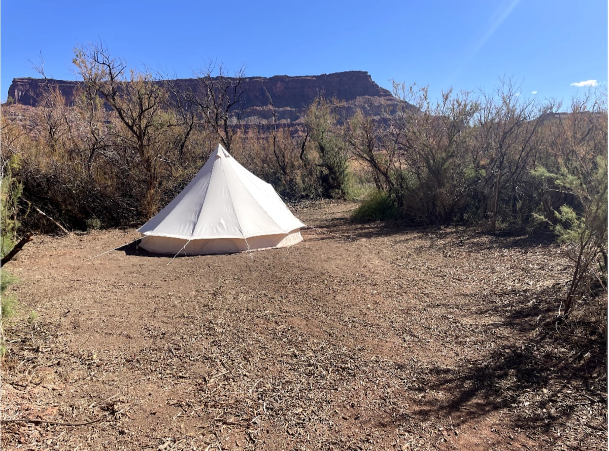 Odmorite se i opustite u našem skrovitom, vrhunskom šatoru u Moabu! Okruženi smo visokim formacijama crvenih stijena na obali rijeke Kolorado. (Ovo je jedinica samo za šatore. Namještaj i oprema za kampovanje nijesu uključeni.) Uživajte u predivnoj prirodi u prostranom platnenom šatoru i zadivljujućem pogledu samo nekoliko metara od rijeke! Nalazimo se u srcu Moaba, tako da ima mnogo planinarenja, penjanja i avantura i na našem sajtu i u blizini!🏜. Primalresorts .com