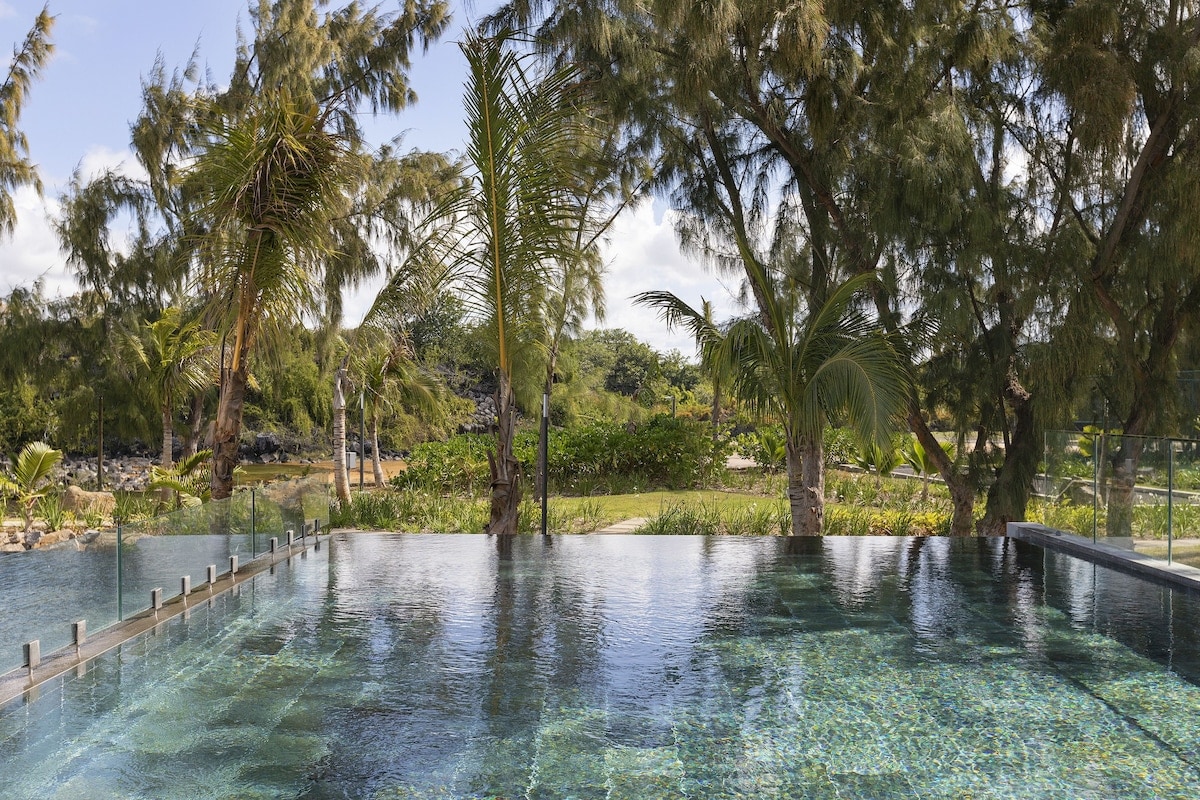 Uživajte u ovom novom i pažljivo uređenom stanu u Grand Gaubeu, koji nudi zadivljujući pogled na okean i direktan pristup plaži. Sa svoje 3 spavaće sobe i zajedničkim bazenom, ovaj stan u prizemlju je savršen za odmor za porodice ili prijatelje, kombinuje prostor, udobnost i privilegovanu lokaciju. Mirna luka u srcu Mauricijusa. Samo kratka vožnja od 10 minuta do restorana, prodavnica i supermarketa. Usluga čišćenja je uključena dva puta nedeljno.