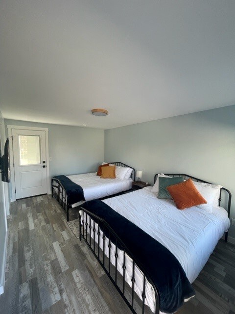 This 2 bedroom suite is adjoined by a door between the 2 rooms. One room has a kings size bed while the other has 2 queen beds. Both rooms have a seperate, full size bathroom with step in shower as we as coffee maker, microwave, mini-fridge and ice maker. Come and visit and enjoy your private patio overlooking the vineyard and mountains surrounding The Homestead!