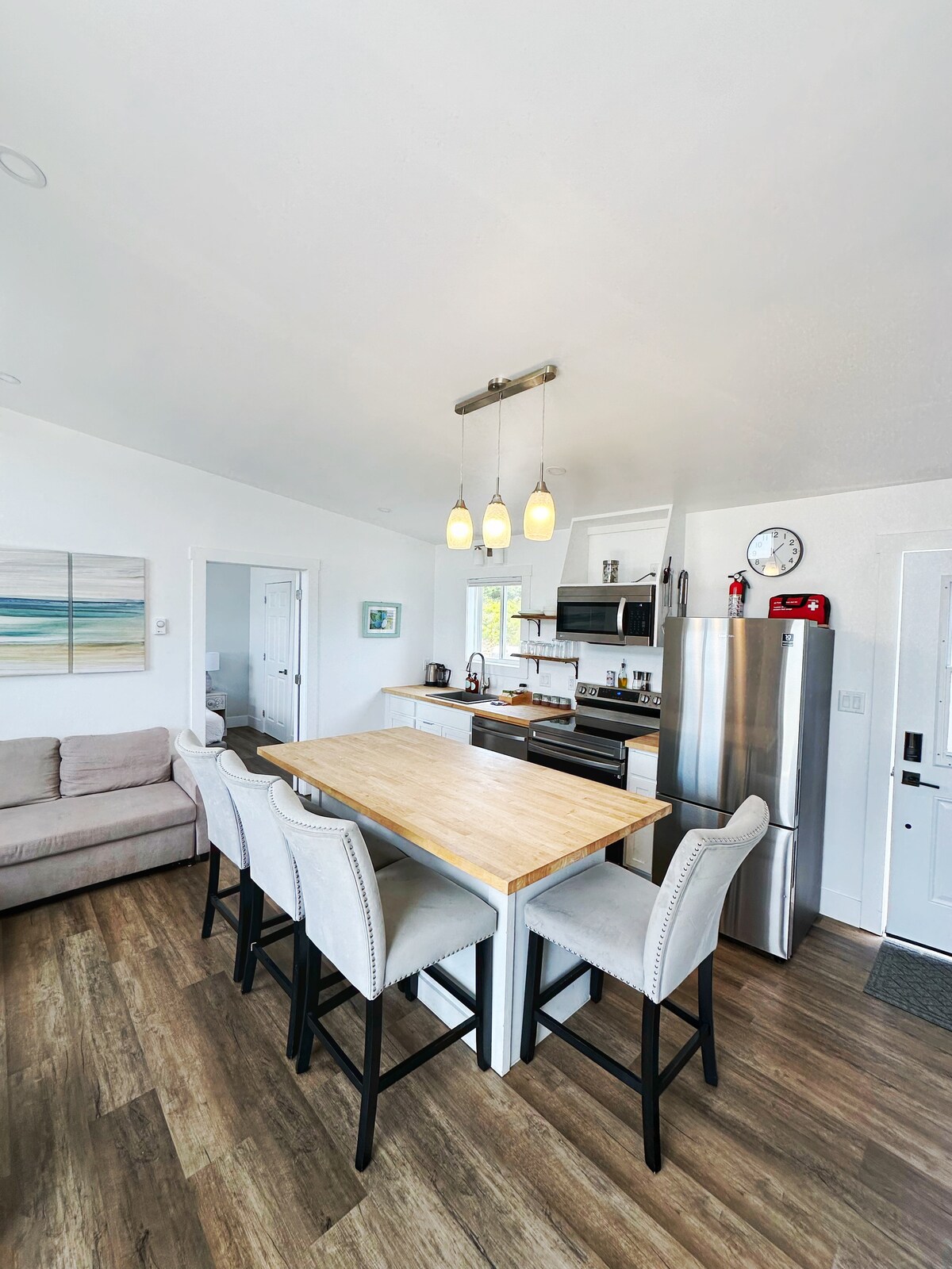Moderan studio apartman u istorijskoj zgradi u Istport Mejnu. 460 kvadratnih metara sa privatnom terasom, bračnim krevetom, prostorom za sedenje sa šporetom na gas, kuhinjom kuhinje i kupatilom. Na drugom spratu se pruža pogled na veliko dvorište i ima sto, suncobran i stolice za večeru napolju ili jednostavno uživanje u danu. Privatan ulaz i parking van ulice. Dobro opremljena kuhinja sa frižiderom/zamrzivačem, Keurig, čajnik, toster, posuđe, noževi, pribor za jelo, posuđe. Veliki ormar sa usisivačem i grejalicom.