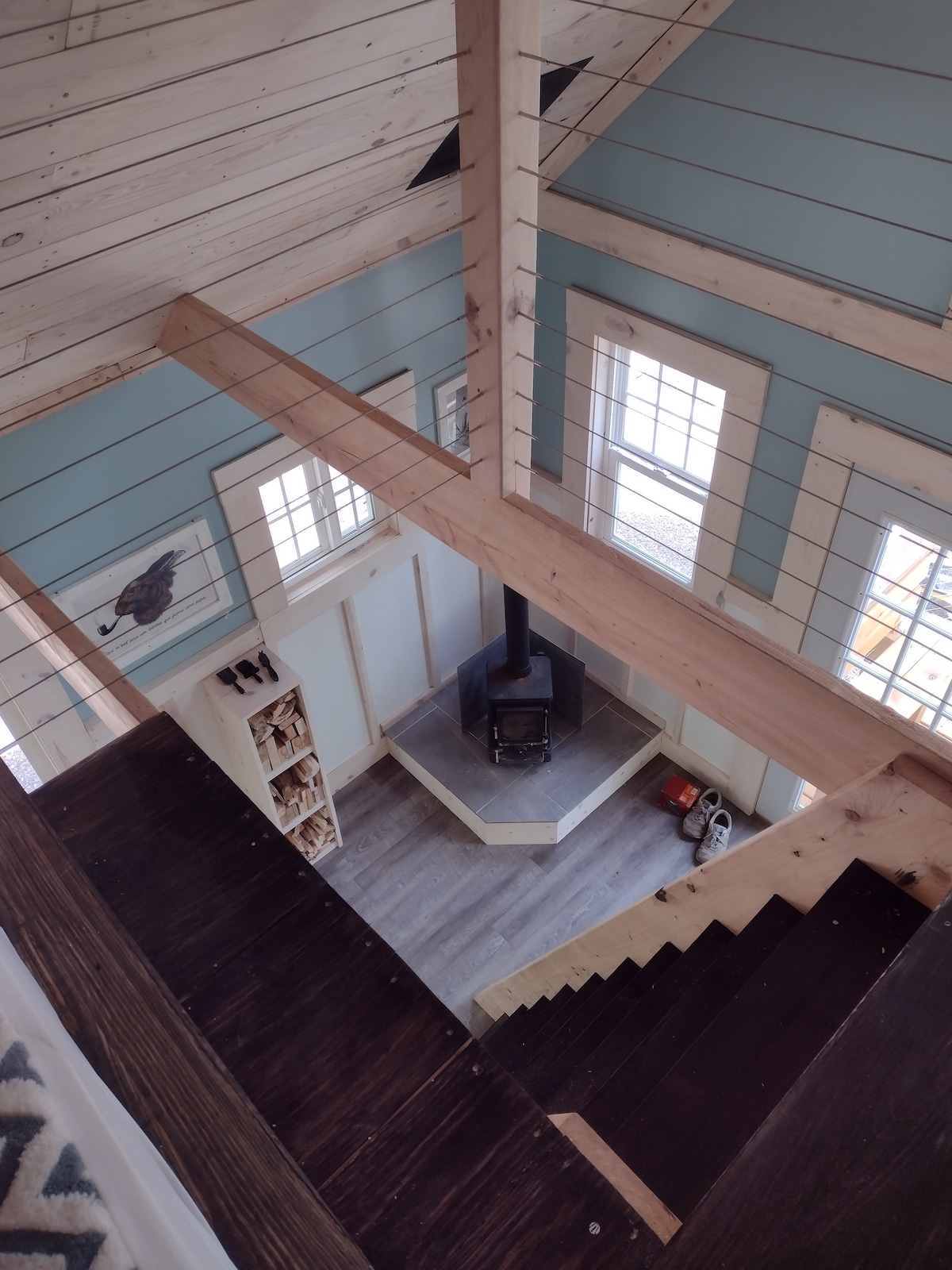 Moderna, rustična, A-okvirna brvnara na 10 hektara šume; prelep, jednostavan dekor, potpuno opremljena kuhinja, svi aparati, staklena ploča za kuvanje, vazdušna friteza, filtrirana voda/ledomat. Uživajte u luksuznom kupatilu, sa podom od grijanih pločica i tuš kabinom. Peškiri, šampon/regenerator/gel za tuširanje su obezbijeđeni. Bračni krevet (širine 180–220 cm) u potkrovlju i NOVI bračni krevet (širine 180–220 cm) sa dušekom od memorijske pene na glavnom spratu. Smart TV, Wi-Fi. Knjige, igre Peć na drva savršeno grije brvnaru u hladnijim mjesecima. Obezbijeđeno je svo drvo. Postoji mini split klima-uređaj za grijanje/hlađenje.