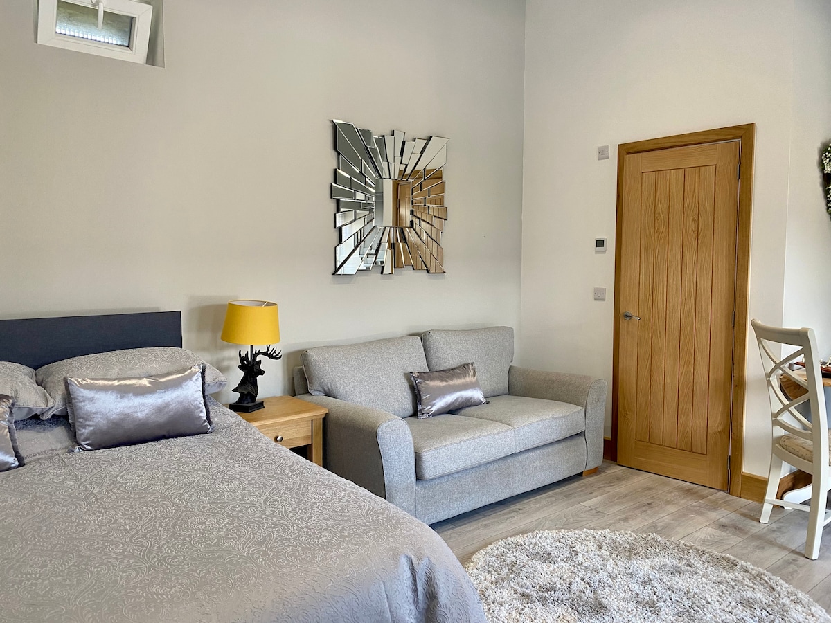 Skinite čizme za šetnju, operite bicikl ili samo parkirajte automobil, ove svježe preuređene odgajivačnice su pravo mjesto za opuštanje na nekoliko dana. Mirno i daleko od svega, ali dovoljno blizu da istražite ljepotu okruga Pik i kuće Četsvort. Matlock je udaljen nekoliko kilometara sa restoranima, prodavnicama i sadržajima. Možete početi da istražujete od praga; možemo vam pomoći sa vodičima, uputstvima i preporukama. Soba se može konfigurisati kao luksuzni Super bračni krevet ili bračni krevet.