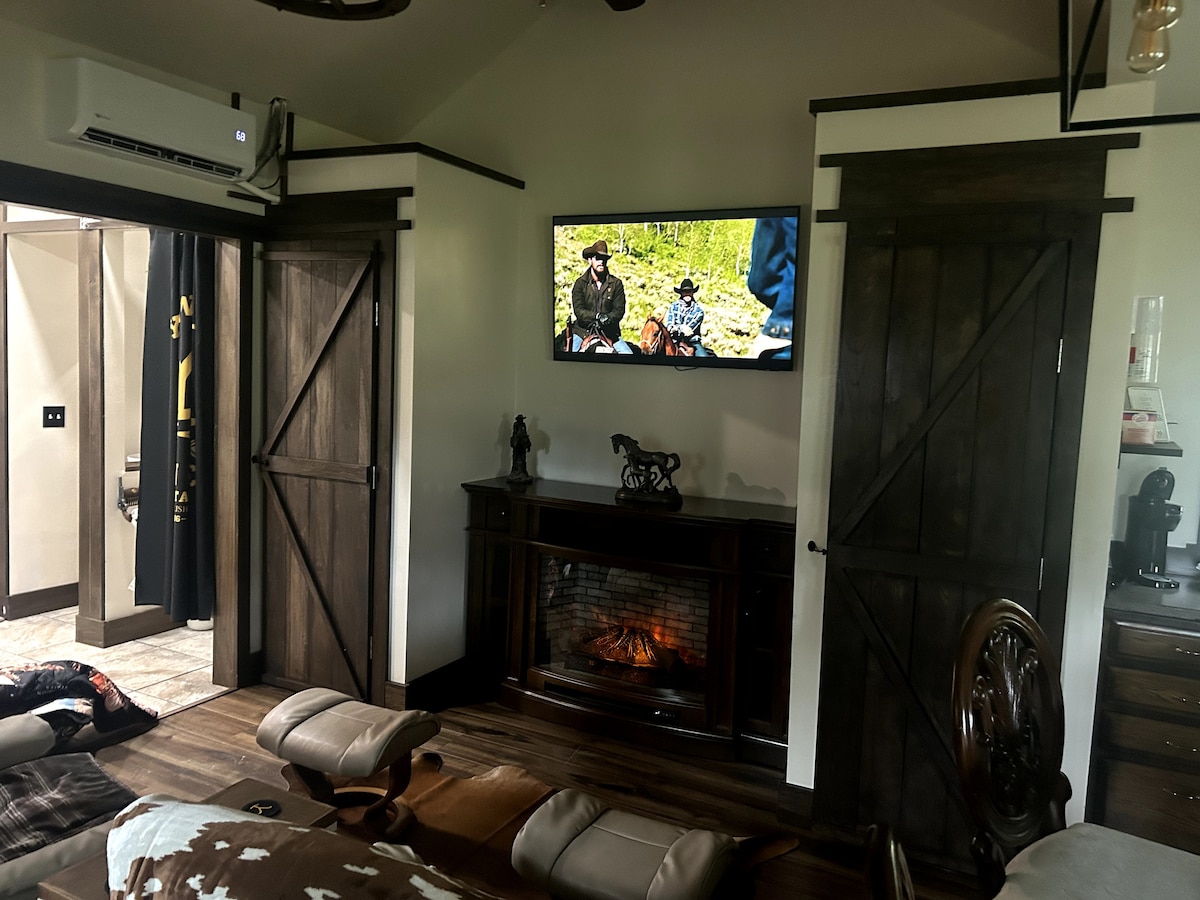 Guest love the peace and the views here at our retreat. Enjoy a morning or evening in the hot tub, sun on the pool deck and swim in warm weather. Relax by the fireplace or fire pit (roast some s’mores). Walk the property to see the chickens, horse, donkey and goats. At our farm we love diversity, support all love, and don’t think that hate makes America great - if you don’t agree we may not be the destination for you. We have added a small chair that converts to a bed- we can squeeze 3 in.