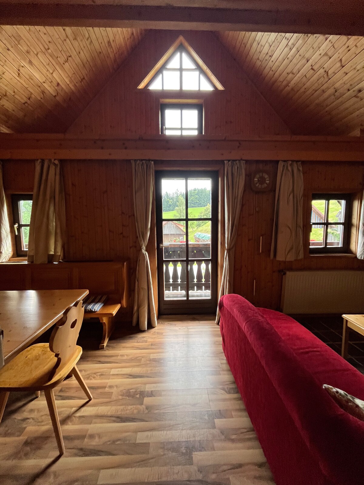 Atraktivan stan na posljednjem spratu kuće za jednu porodicu okružen livadama, poljima i šumama dostupan je kao smještaj za montažne radnike po posebnoj cijeni. Porodice na odmoru i umjetnici u prolazu su takođe dobrodošli. Područje je mirno i nudi mnogo pješačkih staza. Sa rijekom Raab udaljenom samo nekoliko metara, to je idealna oaza za opuštanje za um i tijelo. Priroda inspiriše aktivnosti kao što su pisanje ili rad na računaru.