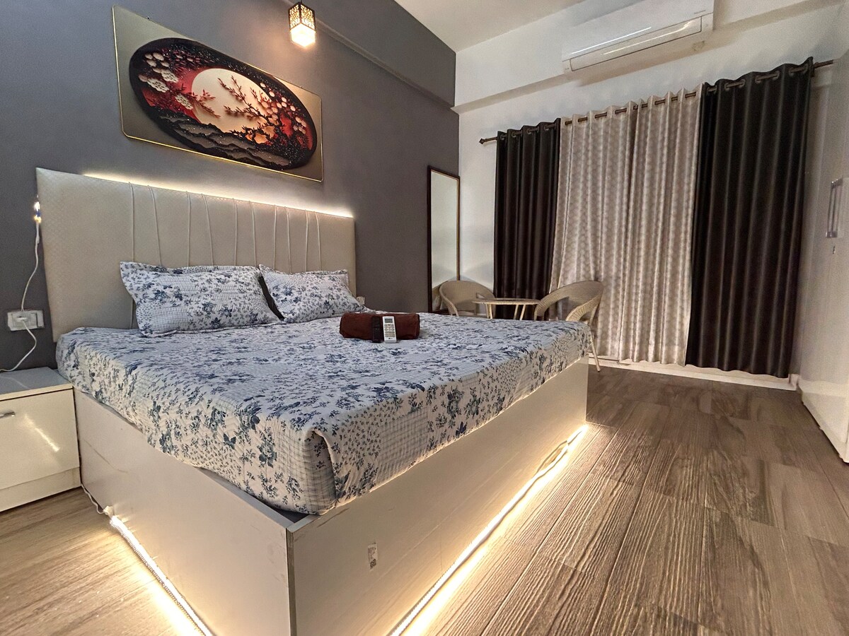 ✨ Luksuzni studio sa pogledom na horizont | Visoki sprat | Balkon | Prime Noida Probudite se iznad grada u ovom elegantnom apartmanu na visokom spratu, pažljivo dizajniranom za goste koji cijene udobnost, privatnost i vrhunski boravak. Smješten u jednom od najtraženijih tornjeva u Noidi, ovaj prostor nudi prekrasan otvoren pogled, privatni balkon i enterijer hotelskog kvaliteta, savršen za poslovne putnike, parove i duže ili kraće boravke.
