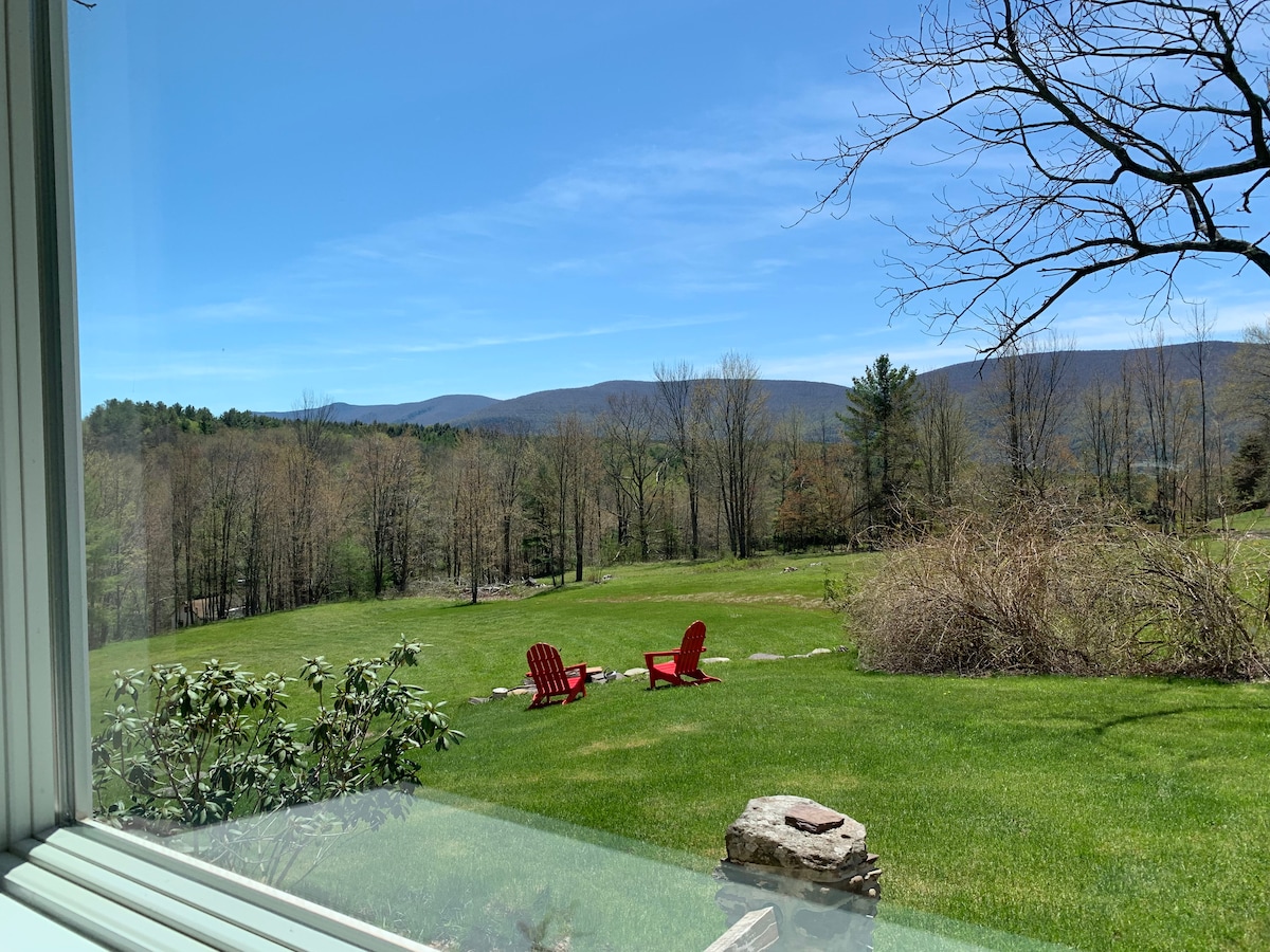 Jedinstvena moderna seoska kuća sa predivnim pogledom / kupatilo nalik spa centru / kamin na gas / potpuno opremljena kuhinja / radne površine od steatita / novi vrhunski aparati. Potpuna privatnost Visoki plafoni, ručno ožbukani zidovi, starinska vrata. Staklena francuska vrata koja vode do privatne terase Uživajte u velikoj planini Ketskil i sezonskom pogledu na rijeku Hadson. Veliko kupatilo ima popločanu tuš-kabinu sa staklenim vratima i kadu za kupanje. Ognjište Fieldstone s pogledom na Ketskils!