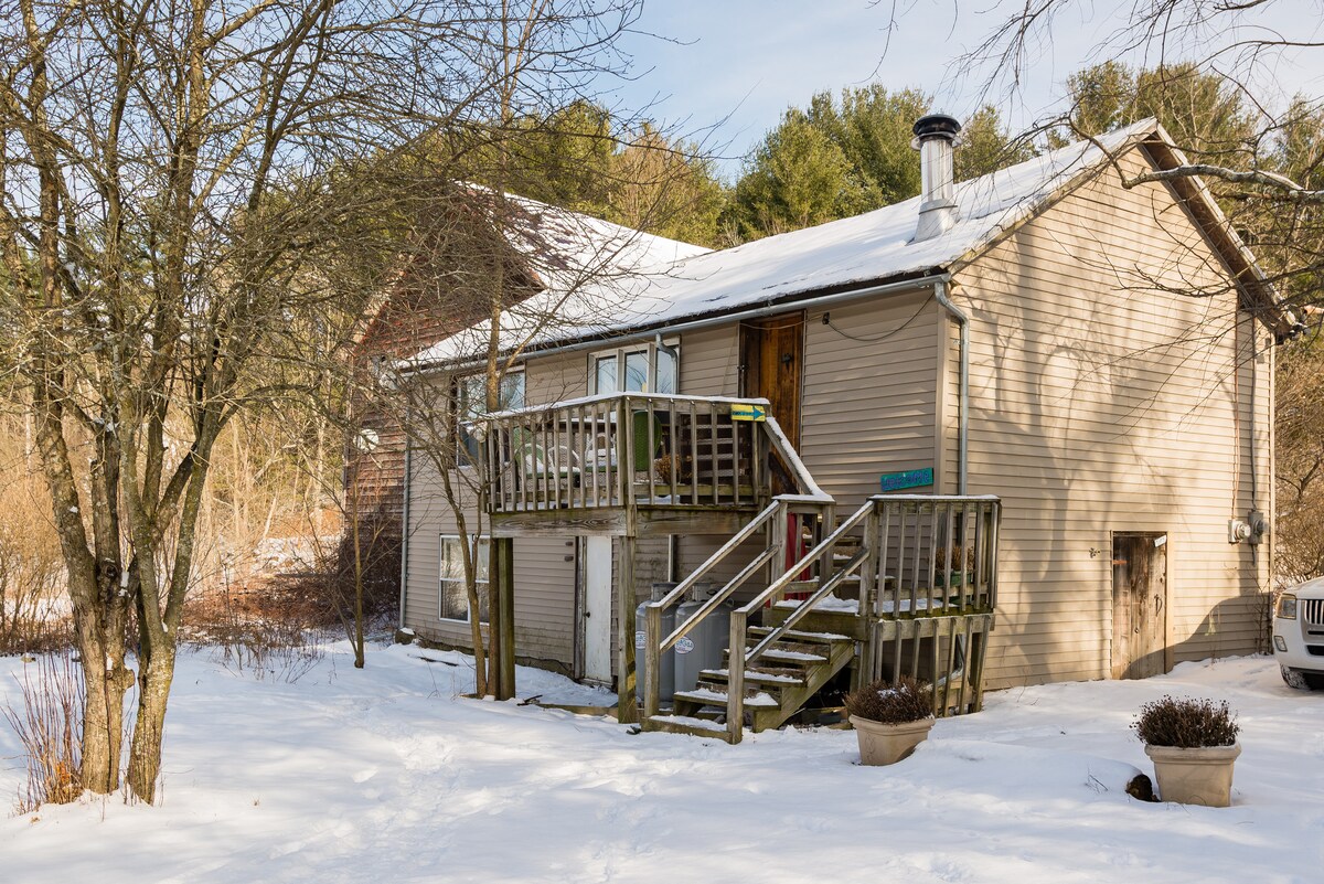 Predivno renovirana kuća sa 3 spavaće sobe, 1,5 kupatilo na 3 hektara. U blizini su Saugerties, Woodstock i Hunter Mountain, a ipak imaju veliki objekat i Mountain View! 4 MINUTA za šou s konjima! U blizini skijališta! *NOVO u 2025. godini - klima-uređaj sa mini split uređajima u cijelom smještaju! Dolina Hadson ima mnogo toga da ponudi i nadamo se da će naš dom biti vaše udobno utočište za povezivanje i opuštanje, spremanje ukusnih obroka i spavanje dok istražujete i uživate u ovom području! Prikladno za djecu, igralište u sklopu objekta!