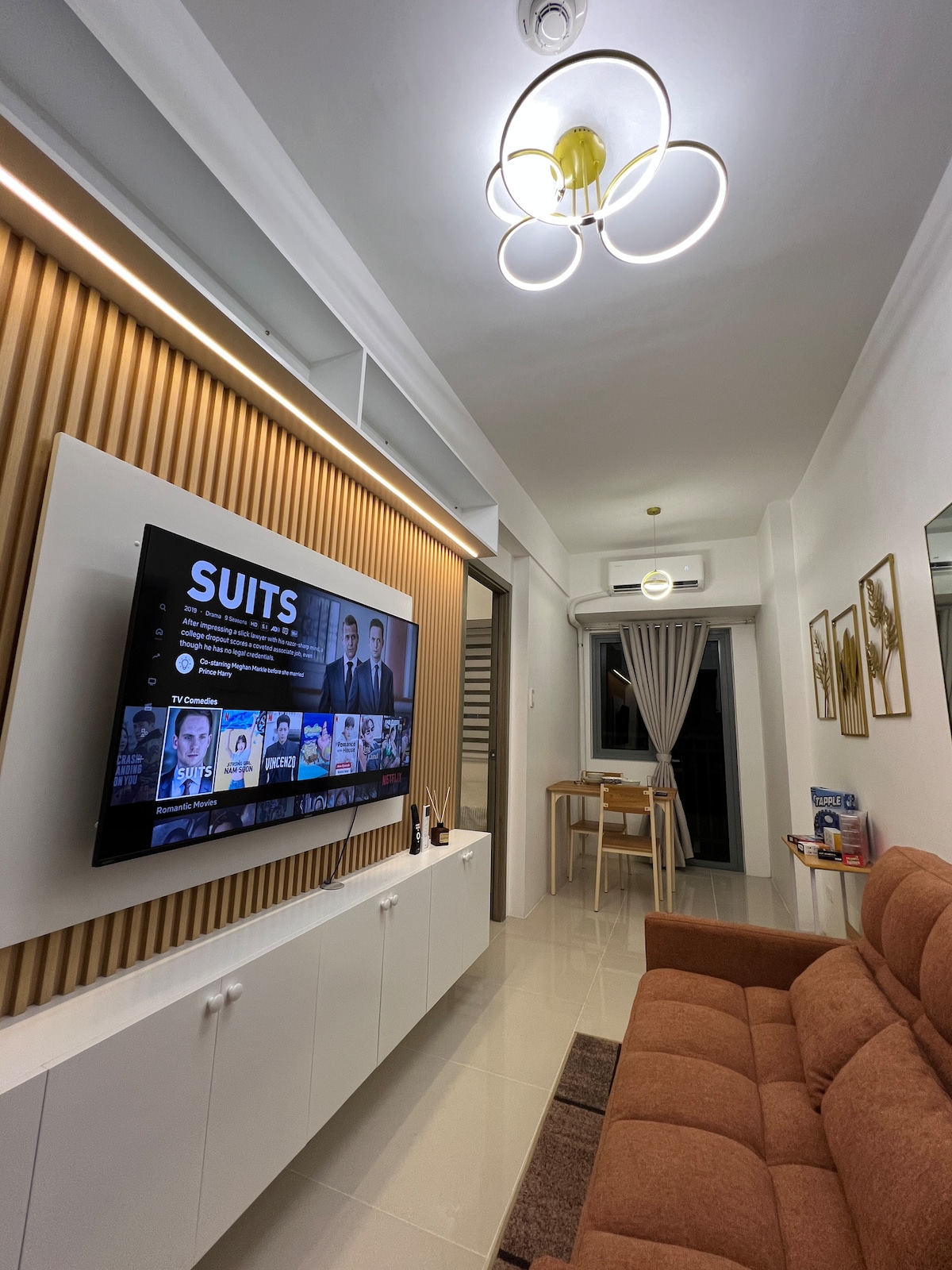 Looking for a fun, cozy, and techy escape? This 24sqm condo in EDSA Mandaluyong is your perfect staycation spot! Enjoy voice-activated smart living, a 100” Samsung projector for cinema-style entertainment, and hotel-like comfort. Sip coffee on the balcony while catching a gorgeous sunset. Stay connected with 100mbps internet—perfect for couples, WFH days, or quick getaways. Stylish, comfy, and packed with cool features—your relaxing city escape starts here!