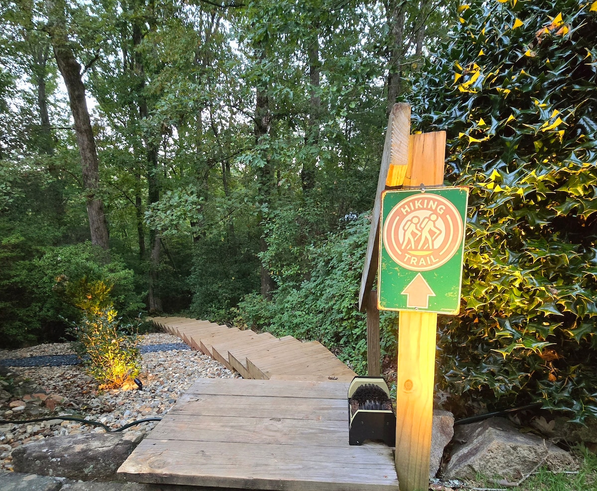 Uđite u šumu i otkrijte privatnu, mirnu brvnaru kao sa razglednice s pogledom na potok koji se prostire na 2 hektara (puno velikih grgeča i sunčanih riba) pored 12 hektara borove i bjelogorične šume sa stazama, kajacima i čamcem na pedale za vaše uživanje. Izležavajte se na širokom trijemu, večerajte na otvorenom, drijemajte viseću ležaljku, roštilj, logorske vatre. Čarobno utočište, a ipak blizu super slatkog grada. Travellers Rest, Swamp Rabbit Trail i Furman U. Profesionalno očišćeno; Vlasnik upravlja i živi na licu mjesta.