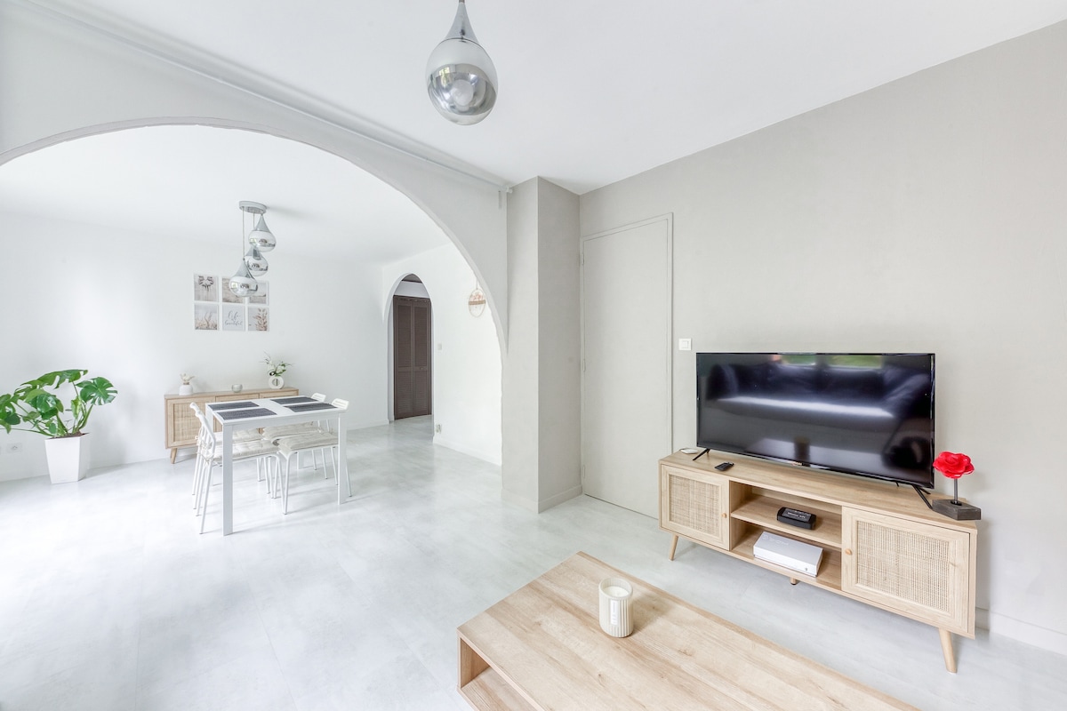 🌼Opustite se u ove prelijepe 2 sobe od oko 60 m2😊 Odlična lokacija na lokaciji: - 15 minuta hoda do stanice Viry Chatillon RER D - 2 minuta hoda do autobusa DM5 i DM04 koji opslužuju željezničku stanicu za 3 minuta - 5 minuta hoda do T12 - 20 minuta od aerodroma Orli Nalazi se nasuprot jezera Viry Châtillon, idealno mjesto za šetnju. ▶️- Svetlo i opremljeno ▶️- Wi-Fi ▶️- Smart Smart TV ▶️- Peškiri i posteljina su obezbijeđeni, kreveti su namješteni po vašem dolasku