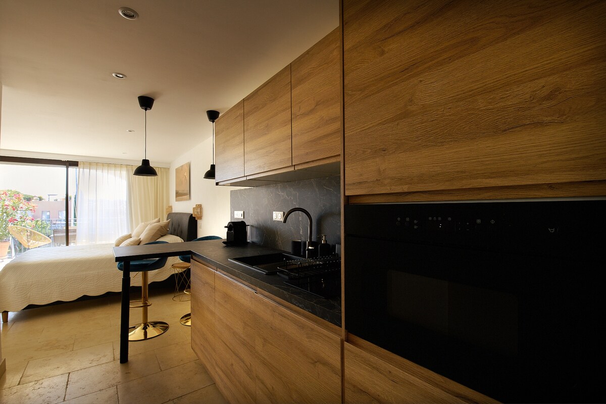 Šarmantni renovirani stan s terasom na kanalima Potpuno renovirana 2025. godine, ova čahura vas dočekuje sa ulazom opremljenim garderobom, tuš kabinom i svijetlim dnevnim boravkom sa otvorenom kuhinjom i udobnim prostorom za spavanje. Uživajte na prelijepoj terasi s direktnim pogledom na kanale, idealnoj za opuštajući trenutak uz vodu. Klimatizovani stan, pristup plaži. Prevoz do obližnjeg Sen Tropea / Sent Maksima.