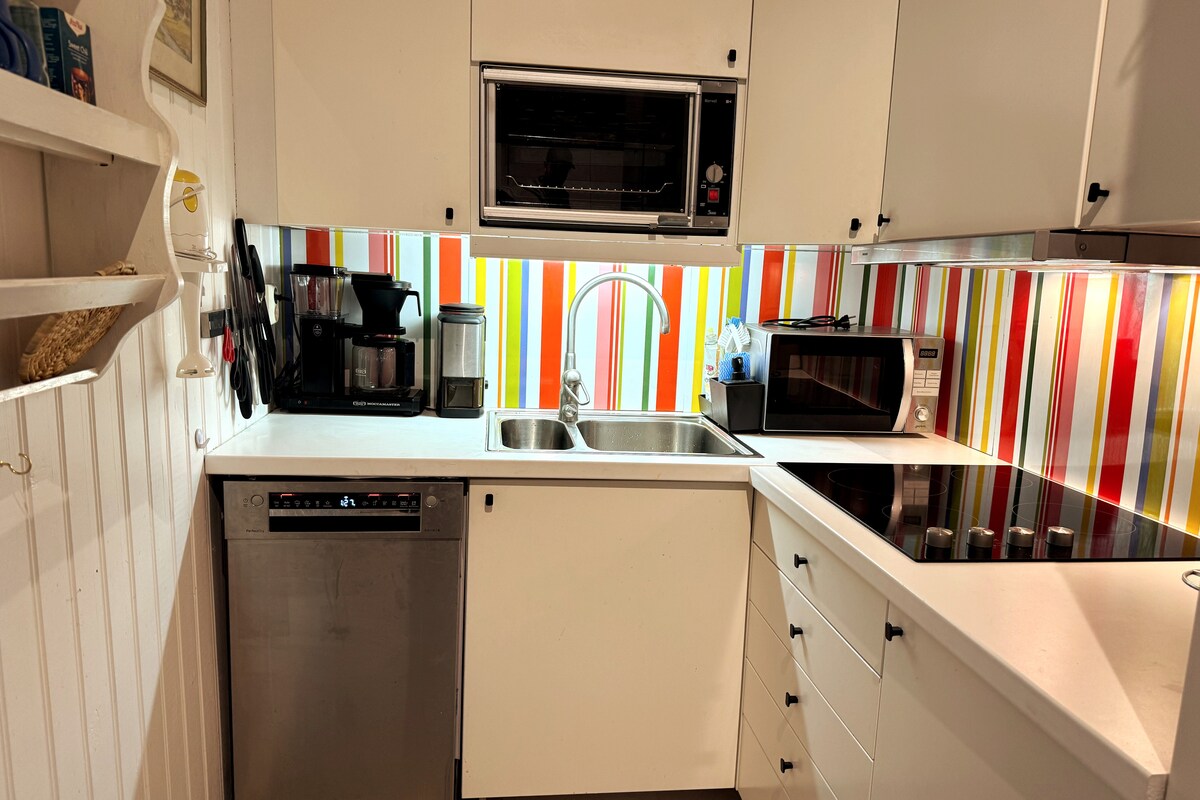 Ovdje živite u prostranom stanu (75 m2) u preuređenom ambaru sa svim sadržajima, kaminom i unutrašnjim dvorištem sa pogledom na jezero. Samo 300 metara do Kabbosjöna sa plažom i pristaništima. Ovdje možete vidjeti divlje životinje kako lutaju, kao što su jeleni i lisice. Možete uživati u lijepim šumskim šetnjama, veslanju, berbi bobičastog voća i pečurki. Smeštaj ima glavnu spavaću sobu sa sofom. Dnevni boravak sa izlazom na terasu i potkrovljem sa dva kreveta za jednu osobu. U dnevnoj sobi se nalazi i krevet za jednu osobu.
