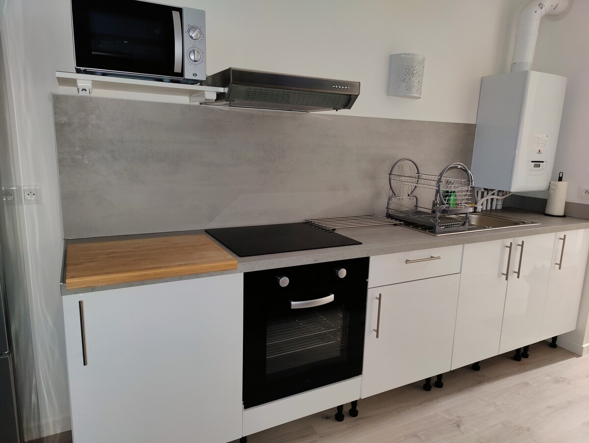 Veliki prostrani studio apartman sa direktnim pristupom privatnoj bašti. U mirnoj rezidenciji. Osvijetljeno i manje od 2mn hoda do prodavnica Velika soba sa velikim krevetom 160x200 i kauč koji se takođe pretvara u krevet. 1 Otvorena kuhinja opremljena svime što vam je potrebno (frižider, zamrzivač, ploča za kuvanje, mikrotalasna rerna, aparat za kafu, čajnik,) Kupatilo i WC Privatna bašta i terasa sa potpunom privatnošću. Brzi WiFi, savršen smještaj za poslovna putovanja ili turiste
