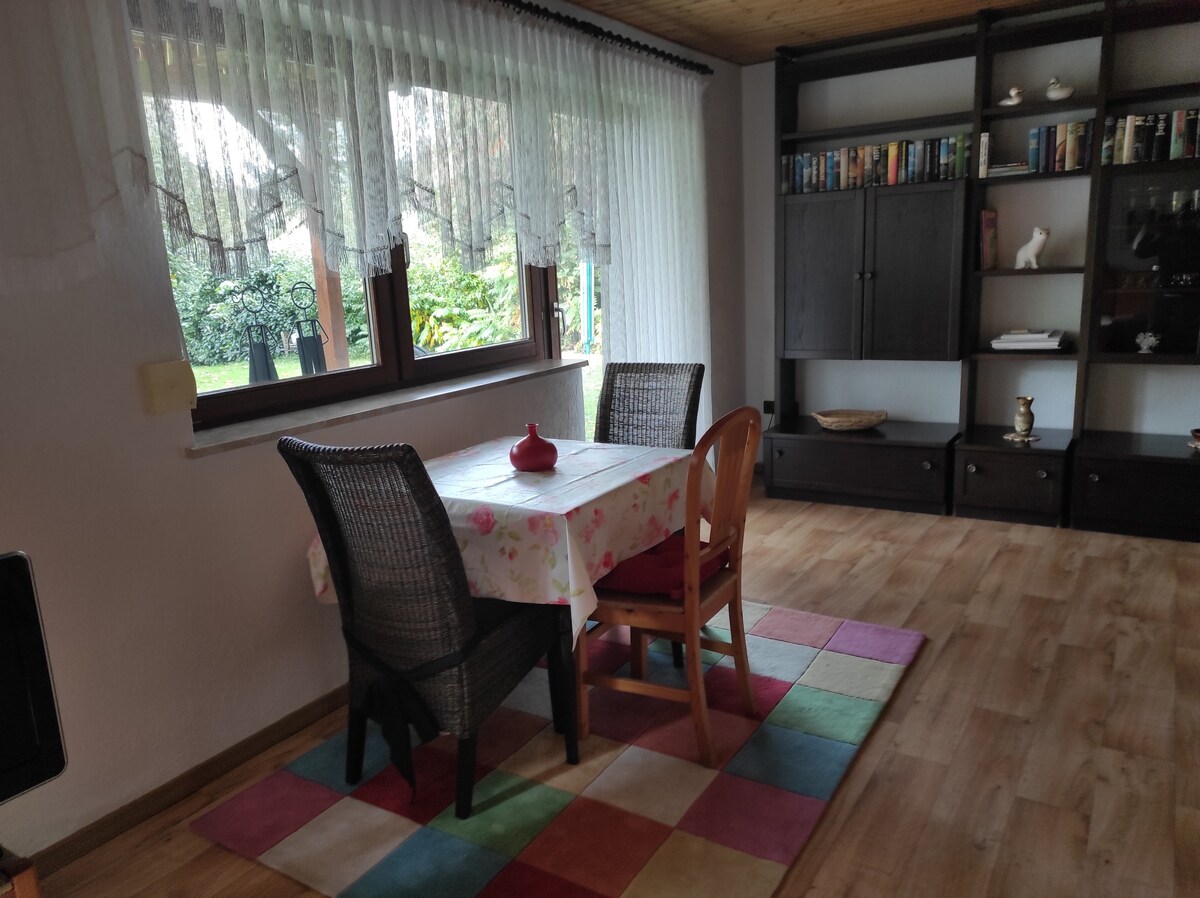 Živećete na selu u veoma mirnom i udobnom stanu od 60 m² u aneksu. Idealno za isključivanje. Obližnji Haßberg sa svojim brojnim stazama poziva vas na pješačenje ili vožnju biciklom. Posteljina i peškiri su uključeni kod nas. Brzi Wi-Fi sa brzinom do 100 Mbps je takođe dostupan besplatno. Pristupni podaci su dostupni u stanu. Bili bismo vam zahvalni ako biste nas unaprijed obavijestili o približnom vremenu dolaska.