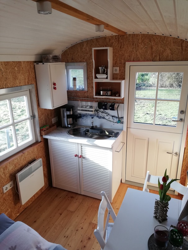 U porodičnoj mreži je proširena prikolica od 9 kvadratnih metara sa velikom pažnjom na detalje. U njenom prvom životu, „Ema“ je zapravo bila zajednička prostorija za zaposlene u kompaniji za izgradnju roditelja. Sada "EMMA" stoji u podnožju Ostedeicha, na skoro 1ha velikom mješovitom šumskom zemljištu i daje vam umiljate noći.