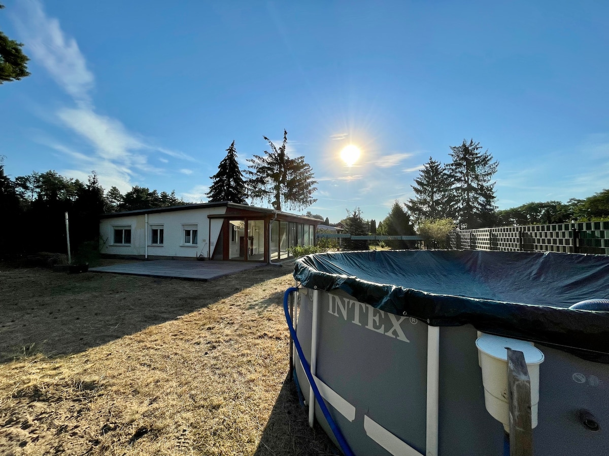 Dobro došli u naš s ljubavlju namješteni bungalov između Dannigkowa i centra Pretzina na selu, okružen šumom i jezerima. Savršeno za one koji traže mir i tišinu, vole prirodu i vole da duboko udahnu Obližnje kamenolomsko jezero Plocki sa ronilačkim centrom Vaserman je popularno mjesto okupljanja ronilaca. Ostala jezera kao što su Felsen-, Silber-, Neuer See, Schilf- i Plattensee nalaze se na pješačkoj udaljenosti. Idealno za parove, porodice i vlasnike pasa.