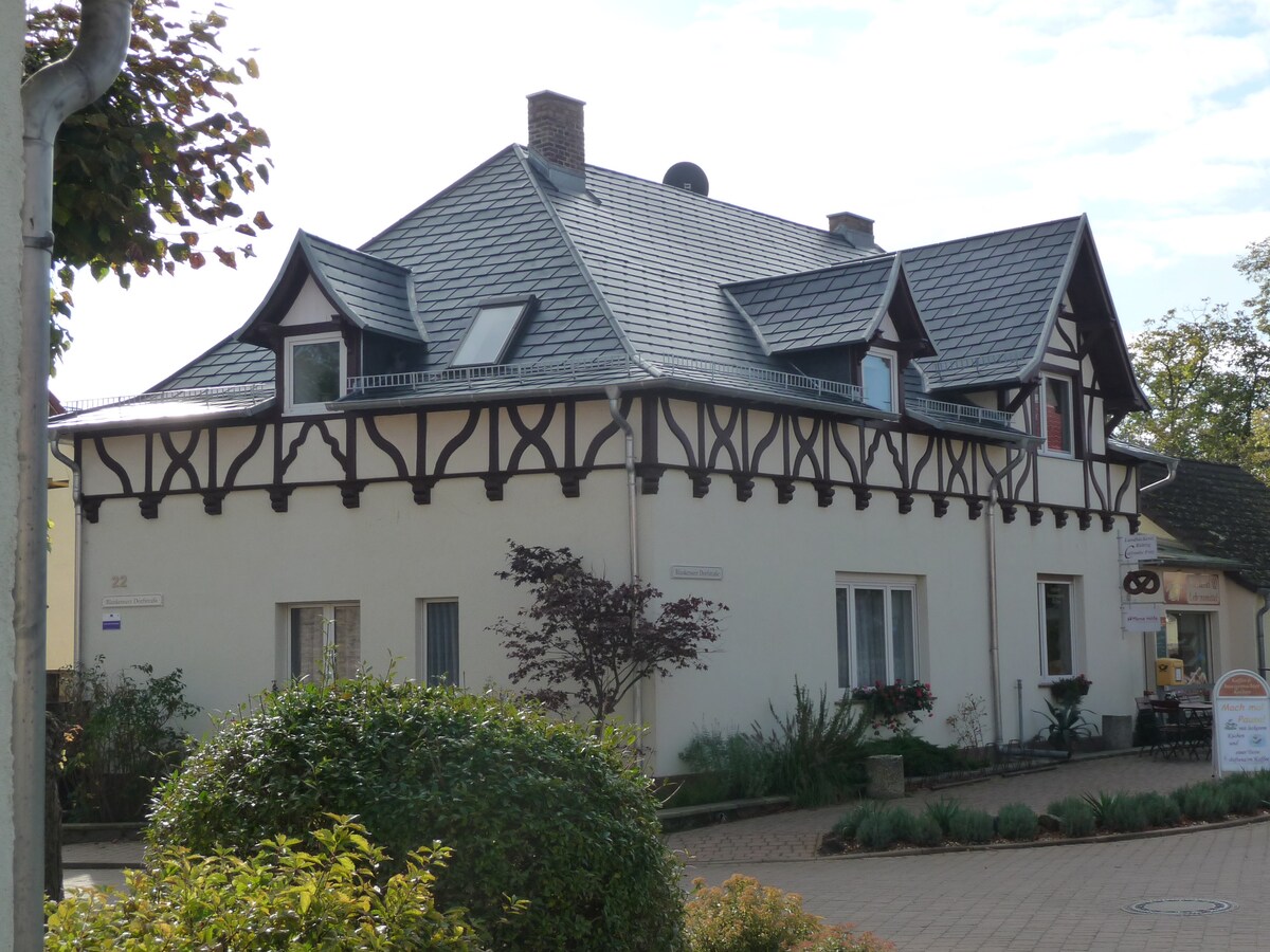 Ako tražite smještaj na selu u neposrednoj blizini Potsdama i Berlina, onda ovo mjesto može biti za vas. Do Potsdama možete doći autobusom ili automobilom za oko 15 minuta. Kroz regionalnu voznu vezu u selu, vi ste sa železničke stanice Vilhelmshorst za 30 minuta na glavnoj stanici u Berlinu. Smeštaj ima sunčanu južnu terasu i baštu od 1000 m2 u kojoj se možete opustiti. Nakon cjelodnevnog razgledanja, vaša deca mogu da igraju ovde po sadržaju vašeg srca.