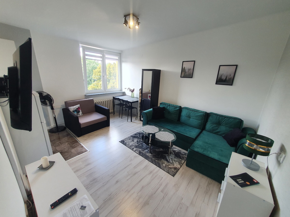 Odmor u gradu ili poslovno putovanje, možete uživati u ovom jednosobnom stanu. Besplatan parking, mašina za pranje veša, mašina za pranje sudova, balkon, kauč na razvlačenje za dodatne goste. Potpuno opremljena kuhinja, sve što vam treba na jednom mjestu. Brzo putovanje do centra, samo 5 minuta automobilom. Autobuska stanica „Krakovska Cmentarz” udaljena je samo 7 minuta hoda.