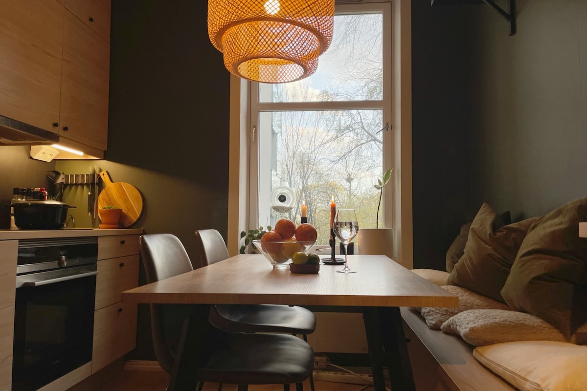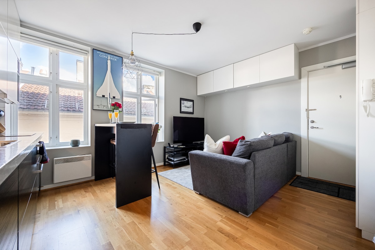 Dočekajte šarmantni apartman sa istorijom i dušom u srcu Grünerløkke. Nekada fabrika čarapa i radionica violine, sada prilagođeni životnom prostoru od 30 m2 za udoban boravak u Oslosu, najistaknutiji gradski deo. U roku od nekoliko koraka možete uživati u kafi u restoranu Tim Wendelboe 's, poljubac u fontanu Olaf Ryes Plass, proći vodopad do kulinarske šetnje Evrope u jednoj zgradi - Mathallen ili pogledajte koncert u Parkteatret. A vi čak niste ni napustili haubu. ;)