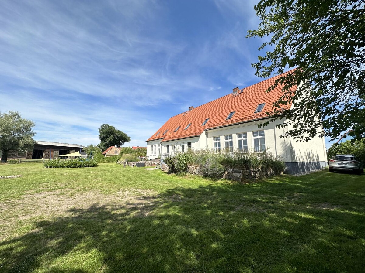 Uživajte u miru i bezbjednosti ovih starih zidova. Okružen drevnim drvećem u okrugu Mecklenburg Lake. Vaš stan je na 1. spratu i pažljivo je renoviran. Obnovili smo stare fabrike gline, otkrili drevne podne daske, a do zidova je došla samo najbolja boja od gline. HideAway je zaokružen malim kaminom od livenog gvožđa za večeri i privatnom saunom na granici polja ... Volimo djecu 🧡🌟 Na farmi žive 4 mačke i 1 pas;-)
