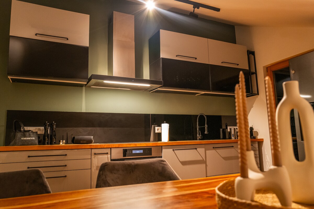 Reihenhaus mit 3 Schlafzimmern, Badezimmer, im EG Küche mit Essbereich, WoZi mit Smart-TV, Gäste-WC, Terrasse/Wintergarten und Garten. Die Küche ist komplett ausgestattet (Jura A1 Vollautomat, Geschirrspüler, Backofen, Mikrowelle, Toaster und Wasserkocher). Direkt neben dem Essbereich befindet sich der private Wintergarten sowie der Zugang zum Garten.