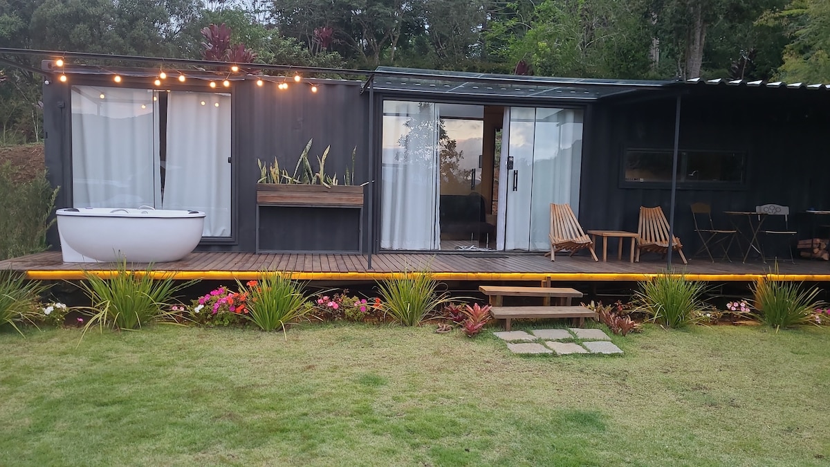 Doživite boravak u kućnom kontejneru sa svim udobnostima na mirnom mjestu, u kontaktu sa prirodom, sa sobom i svojim partnerom! Ovo utočište ima nevjerovatan pogled na planine i dobru energiju koju osjećaju svi koji prolaze! Kuća se nalazi u kondominijumu na stazi „Terê-Fri” 20 minuta od centra Terê (9 km). Ima kompletnu kuhinju, grejanu kupku na otvorenom, bračni krevet, kamin na podu, horizontalnu ležaljku, stolicu za ljuljanje itd.