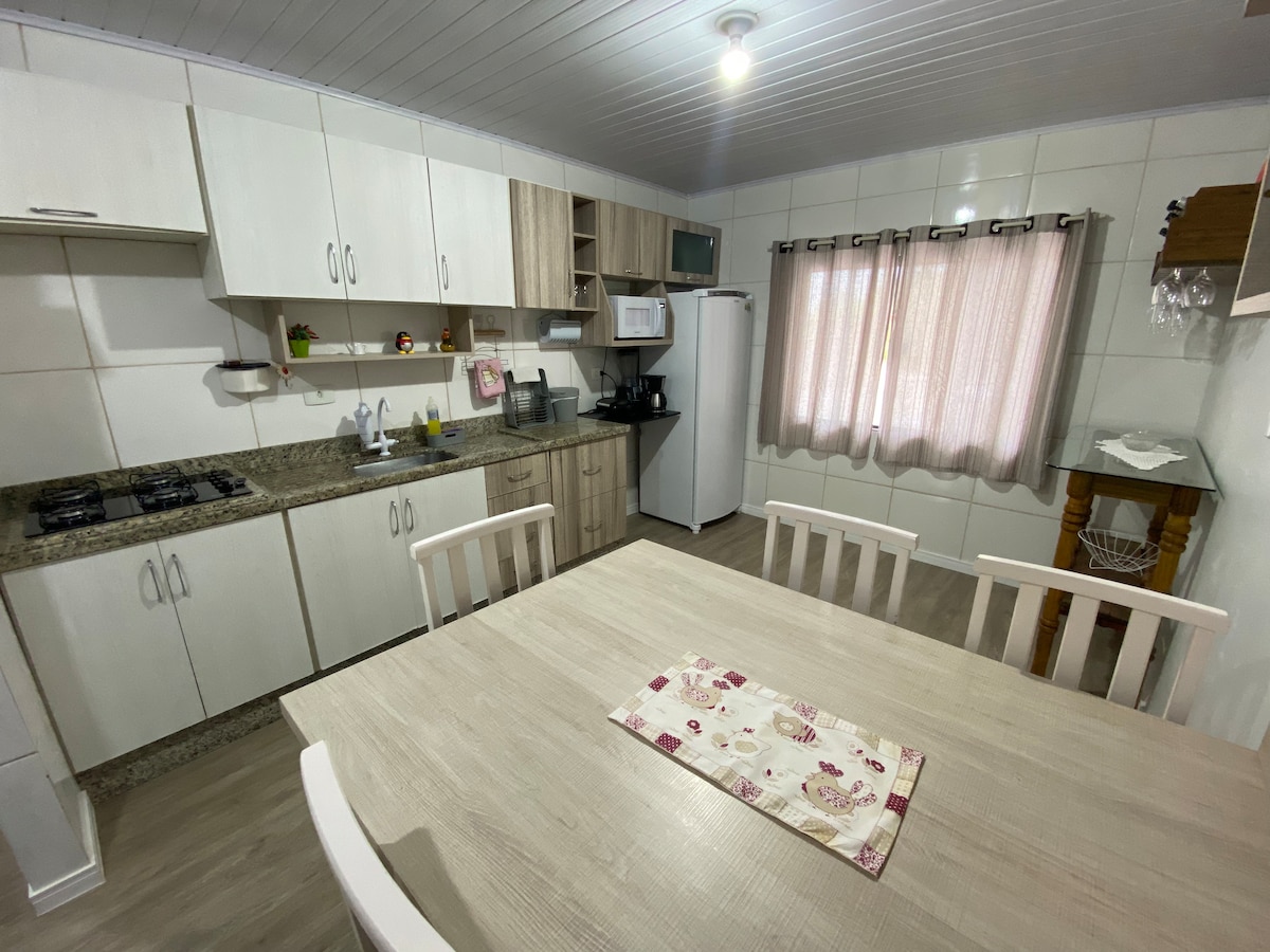 Zaboravite na svoje brige u ovom čistom, udobnom smještaju prikladnom za porodice. Nalazi se u kondominijumu sa 3 kuće na vrhu brda. automobilom je udaljen samo 3 minuta od linearnog parka Via Verde, 4 minuta od Weg II, 8 minuta od centra, 1 minut od benzinske stanice i 2 minuta od pijace i pekare. Jaragua do Sul je prelep grad, sa brojnim šetnjama na otvorenom usred prirode, odličnim za one koji traže nove horizonte sa mirom i tišinom.