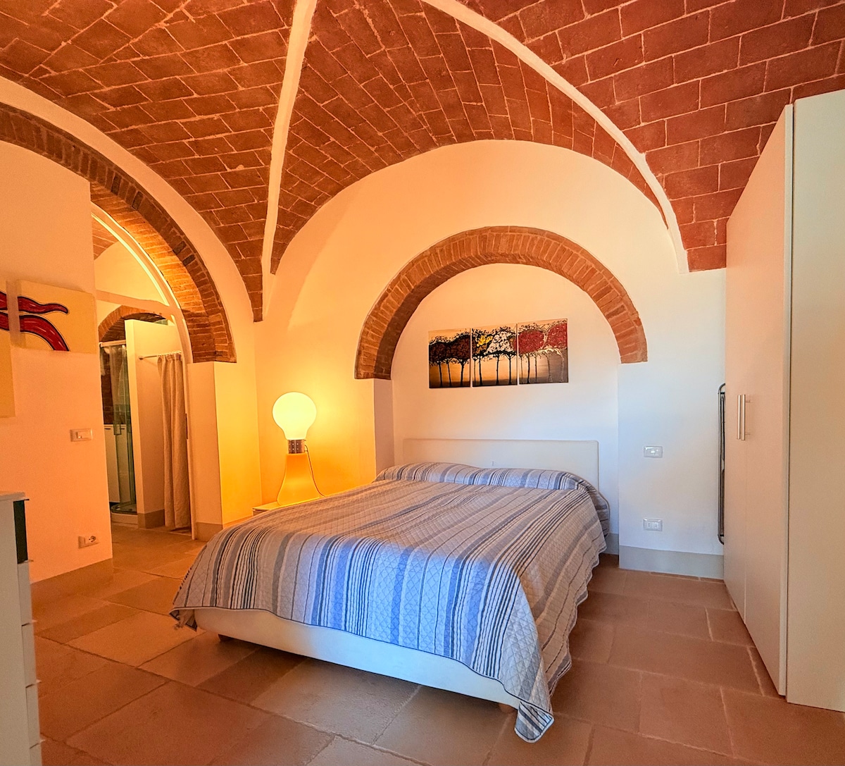 In the heart of the medieval village of Casale Marittimo Il Fienile di Casale is a beautifully restored old hayloft that keeps all the authentic Tuscan charm. With its brick vaulted ceilings, wooden beams and stone walls it offers a warm and welcoming atmosphere. From the living room you can enjoy a breathtaking view over the rolling hills, vineyards and olive groves of the Etruscan Coast stretching all the way to the sea. Perfect for those looking for relaxation wine tourism and nearby beaches.