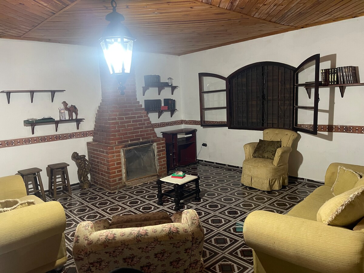 Relaxe neste espaço privativo, calmo e cheio de estilo. Ambiente inspirado em possíveis memórias afetivas de sua infância e ao mesmo tempo recheado detalhes rústico e de bom gosto de uma artesã. Idealizado com foco atender hospedes (casais) que apreciem a vida no campo, ou família (crianças e/ou cãezinhos) e com a possibilidade de estender a experiência com outras poucas pessoas. (cobramos adicional para convidados DayUse e possível contratação do quarto extra)
