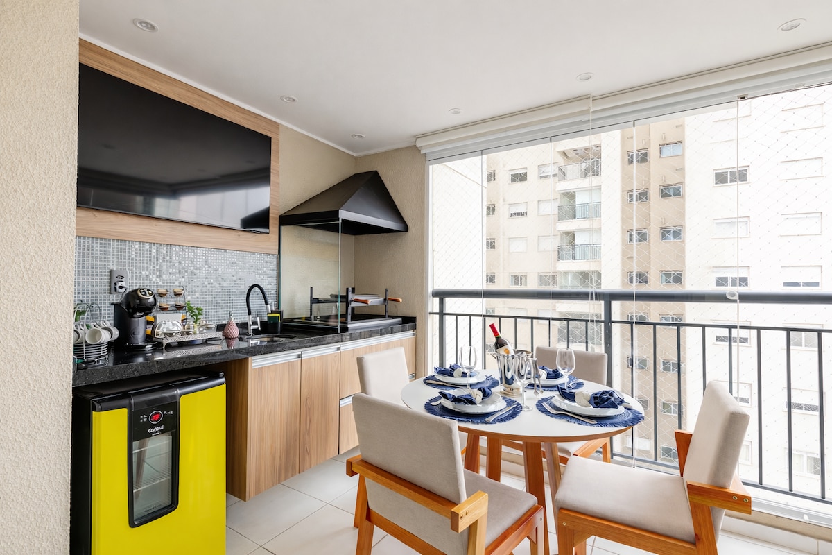 Moderan i funkcionalan prostor, idealan za kratak ili duži boravak. Ima bračni krevet i pomoćni krevet ispod, klima-uređaj, okretni TV, radni sto i udoban balkon. Profesionalna posteljina i peškiri. Potpuno opremljena kuhinja sa indukcionim šporetom, aparatom za kafu, mikrotalasnom pećnicom, frižiderom i priborom za kuvanje i serviranje. Zgrada nudi bazen, teretanu na krovu, vešernicu, mini-market i uslugu parkiranja. Samo 5 minuta od tržnog centra Maia i 25 minuta od aerodroma GRU.