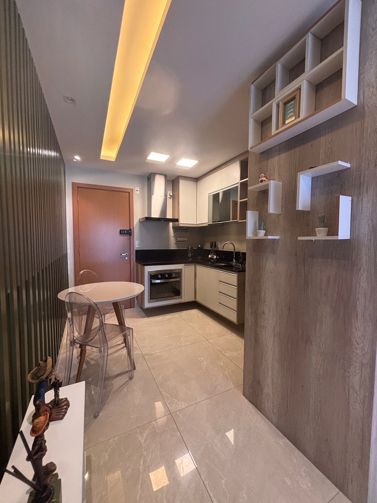 Studio sa privatnim roštiljem, pored tržnog centra Maia i nekoliko minuta od aerodroma Guaruljos. Moderan, udoban, opremljen za odmor ili rad, prostor ima brz Wi-Fi, klima-uređaj za grijanje i hlađenje, TV od 55 inča, potpuno opremljenu kuhinju, kutak za kafu, natkriveno parking mjesto i gurmanski balkon savršen za opuštanje. Strateška lokacija sa lakim pristupom glavnim saobraćajnicama i važnim tačkama Guaruljosa. Idealno za kratke ili duže boravke, poslovna putovanja i one koji traže praktičnost