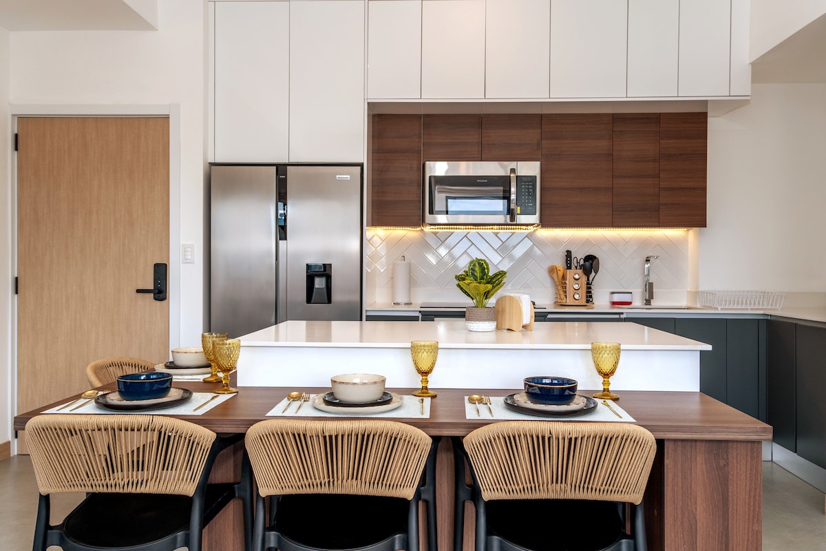 Beautifully appointed and brand new apartment with stunning views. This terrific space offers wonderful home away from home amenities. Inviting open concept living, dining area open to fully equipped modern kitchen. 2 cozy bedrooms with high quality beds & bedding. 1 & 1/2 modern bathrooms. Safe parking. Laundry service can be provided. Centrally located, walking distance to restaurants, and close proximity to Plaza San Francisco and the general hospital. Perfect for family or professionals.
