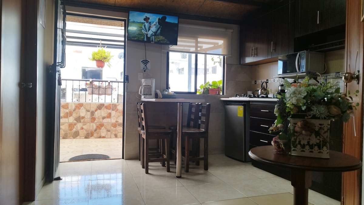 Privatni i nezavisni apartman, okružen prirodom i sa opuštajućim pogledom, nalazi se na 20 minuta od aerodroma. Idealno za parove ili putnike koji traže odmor, privatnost i jednostavan pristup gradu. Ima: - Parqueadero gratuito – Bračni krevet (širine 150–179 cm) sa vrhunskom posteljinom i tamnim zavesama - Opremljena kuhinja - Privatno kupatilo sa toplom vodom - Brzi Wi-Fi internet - Smart TV – Filtar kafa i šećer Uživajte u bašti i prostoru za logorsku vatru u mirnoj i bezbjednoj atmosferi, uz spektakularno vrijeme.
