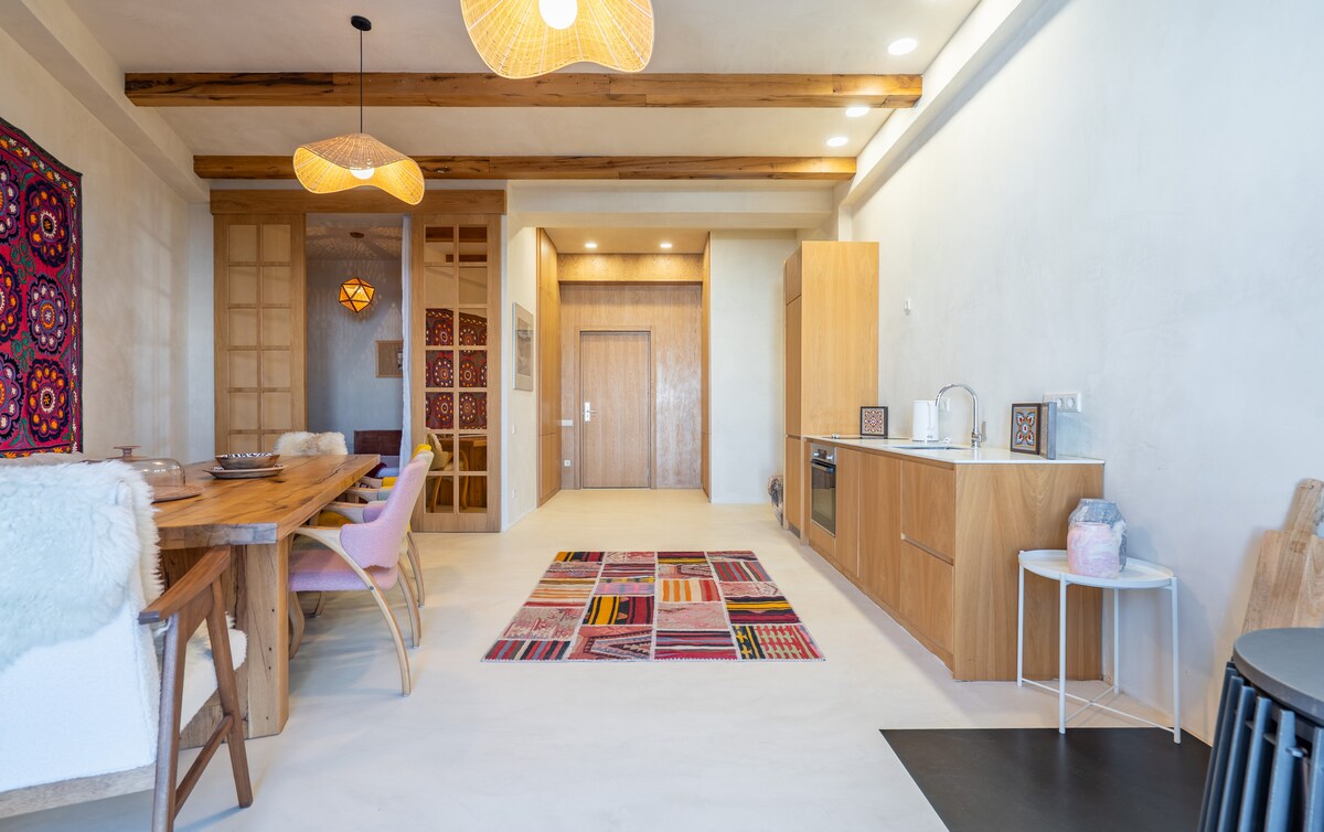 Uživajte u ALPSKOM LUKSUZU u ovom dizajnerskom apartmanu sa 2 spavaće sobe u Gudauriju. Probudite se uz predivan pogled na planine, opustite se u modernom prostoru sa potpuno opremljenom kuhinjom, elegantnim trpezarijskim prostorom i vrhunskim završnim obradama. Uključuje podzemni parking i privatno skladište za skije za 4 osobe. Nekoliko koraka od padina, savršeno za ljubitelje skijanja koji traže udobnost, praktičnost i šarm.