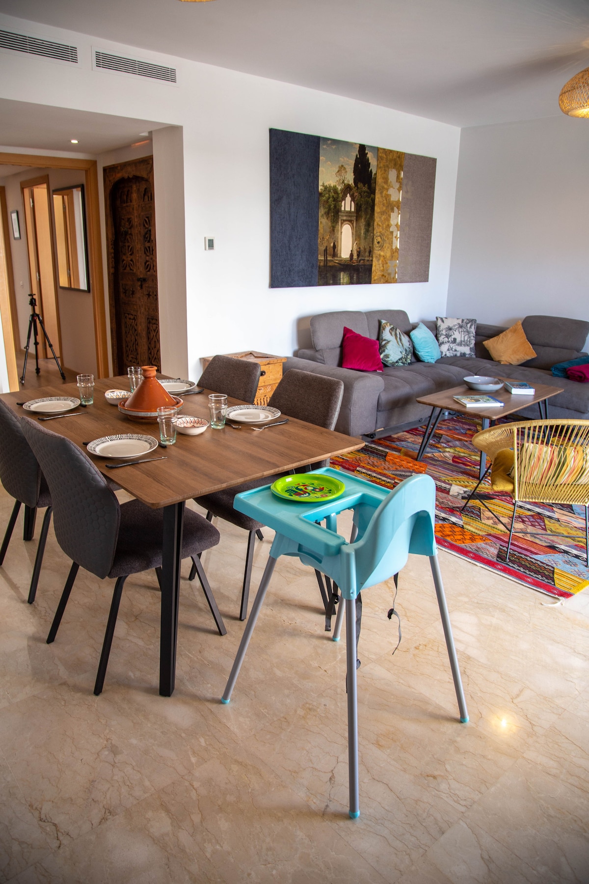 Dobro došli u naš svijetli i prostrani apartman koji se idealno nalazi u prizemlju zgrade u živahnoj četvrti u srcu Agadira. Nekoliko koraka od najboljih atrakcija - restoranski kafić Kao I prodavnice mješovite robe - javni prevoz - Supermarket i apoteka u blizini, plaža 12 minuta Idealno za parove, porodice ili poslovne putnike; mali gest kako biste se osjećali dobrodošlo! Besplatno nudimo korpu sa svježim voćem i flaše vode