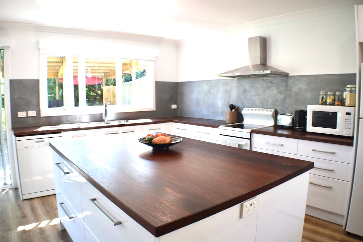 Zaboravite na brige u ovom prostranom i mirnom porodičnom prostoru prikladnom za kućne ljubimce. Nalazi se u veoma mirnoj ulici u starom broulee i samo 500 metara ravna i lagana šetnja do plaže South Broulee. Nedavno potpuno renoviran, dobro opremljen dom sa 3 velike bračne sobe i klima-uređajem sa obrnutim ciklusom. Samostalna prijava je omogućena putem sefa za ključeve, tako da kasni dolasci nisu problem . Brzi NBN Wi-Fi je dostupan sa lozinkom, kao i Telstra TV kutijom, tako da možete da pristupite svim svojim nalozima za zabavu mal