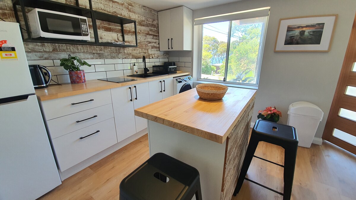 Uživajte u vrhunskoj lokaciji ovog garsonjere iz 80-ih – sa velikim kupatilom, kadom, WC-om i čajnom kuhinjom. Povezan je sa glavnom kućom i ima privatni ulaz, a u blizini se nalazi još jedan Airbnb smještaj. Studio apartman nije okrenut prema okeanu. U obližnjim kafićima možete da jedete, a možete i sami da pripremate jednostavne obroke. Prošetajte minut do plaže Guerilla Bay ili uživajte u zadivljujućem pogledu sa sopstvenog stola u prednjoj bašti. Valabiji, ježovi i varani su česti.