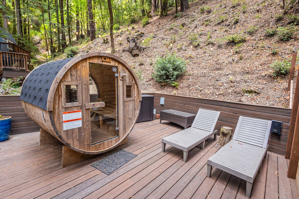 Smještena među veličanstvenim sekvudima Monte Rija, Cottage C je miran i pažljivo uređen smještaj, savršen za opuštanje i ljubitelje prirode. Ovaj šarmantni smještaj ima privatnu hidromasažnu kadu ispod drveća, udoban šporet na drva i prelijepo uređen enterijer sa svime što vam je potrebno za podmlađujući boravak. Kada uđete u ograđeno dvorište, osjećat ćete se kao da ste u svom svijetu, okruženi sekvoodsima i umirujućim zvucima sezonskog potoka.