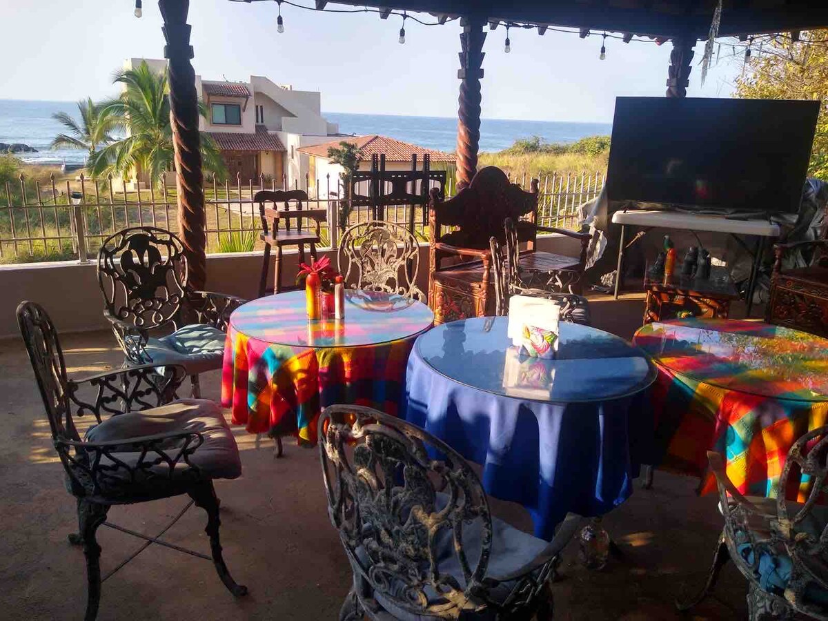 The India Suite is 1 of 6 private rooms in Casa del Encanto B&B located within the safe, friendly fishing village of Barra de Potosi. U srcu sela, okean i laguna na laganoj pješačkoj udaljenosti okružuju nas zvuk surfovanja i tropskih ptica. 2. sprat i može da primi najviše 3 osobe Bračni krevet (širine 150-179 cm) u unutrašnjem prostoru, dodatni krevet za jednu osobu na privatnoj natkrivenoj terasi. Sopstveno kupatilo. Kreveti prekriveni mrežom za komarce, plafonski ventilatori, tropska hladovina i fontane hladan vazduh i drže prirodu blizu.