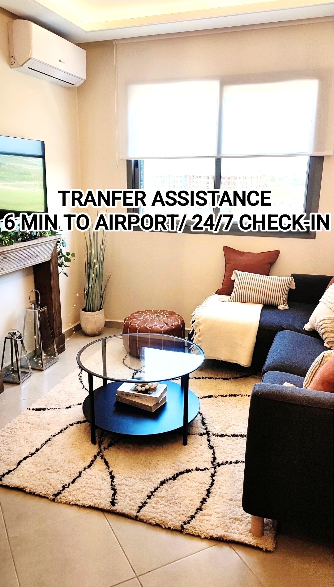 Moderan dvosoban stan sa balkonom i kafićem – vaša moderna baza u Tangiru✨ • Wi-Fi od 100 Mbps | Netflix Smart TV | Klima-uređaj | Potpuno opremljena kuhinja | Mašina za pranje/sušenje veša | društvene igre • Kreveti: 1 bračni krevet + 2 kreveta za jednu osobu • 5–10 min vožnje: Marjane i kafići · blizu stadiona Ibn Batuta • 10–15 min vožnje: Plaža i centar grada · Brz pristup autoputu • 15 minuta vožnje: aerodrom TNG • Autobus i taksi u blizini · Besplatan parking (može biti zauzet noću) • Prijava 15:00–22:00 Savršeno za parove, porodice i poslovne putnike – dođite, opustite se, uživajte u Tangieru!