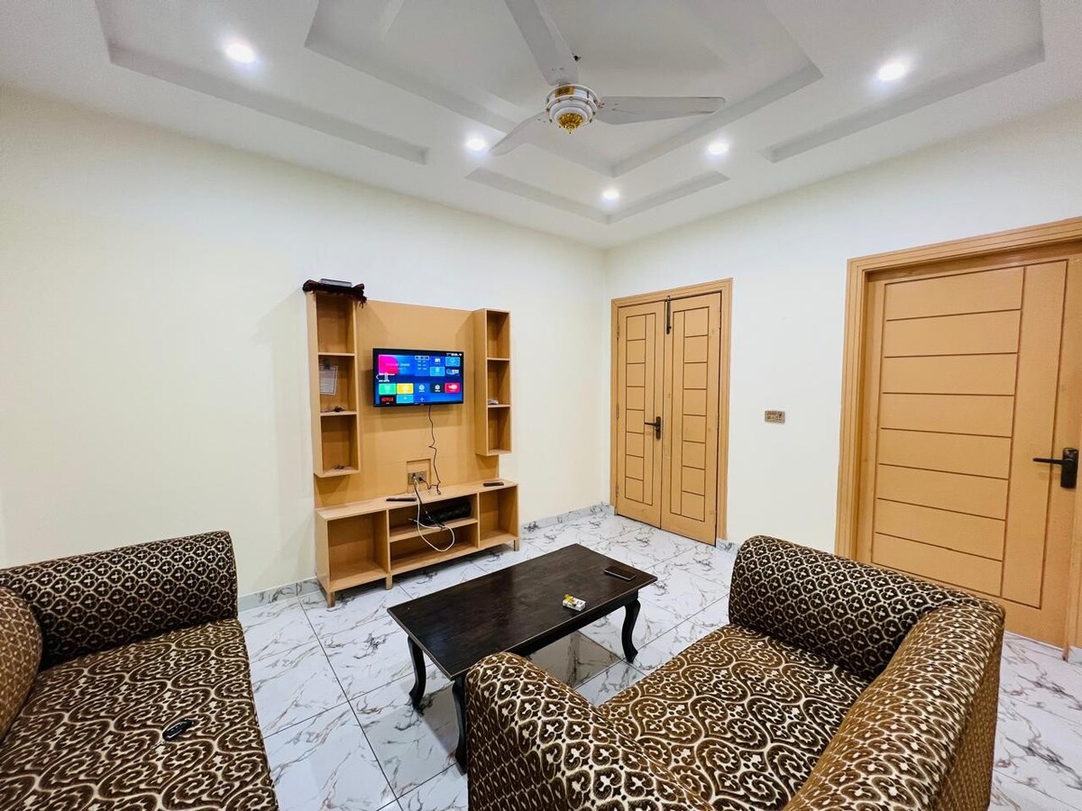 This inviting apartment exudes tranquility, creating a peaceful haven for families. Its warm ambiance embraces you upon entry, instantly fostering a sense of home. Thoughtfully designed, it radiates a family-friendly atmosphere, making it an ideal retreat for shared moments and lasting memories. Relax with the whole family at this peaceful place to stay. Additional services: A visit can be arranged on demand, 1) Gurdwara Rori Sahib Emanabad 2) Opera Cinema Citi Housing Gujranwala