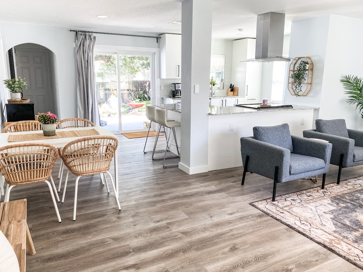Experience modern coastal luxury at this beautiful designer two bedroom first floor cottage in Downtown Dunedin. Steps from Main Street and a short walk to gorgeous sunsets at the waterfront. Enjoy easy access to shops, restaurants, and nightlife. Make the short drive to award winning beaches- Honeymoon Island & Clearwater Beach. Thoughtfully designed and fully stocked for families, pets, beach days. Treat yourself to the perfect coastal getaway at the Barefoot Parrot Cottages.