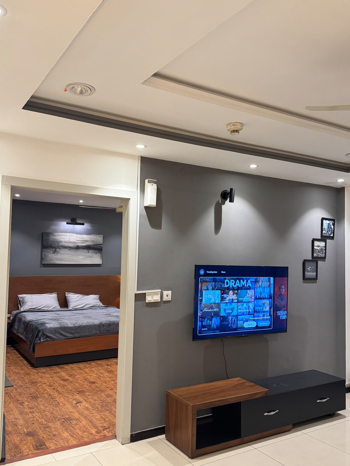 Ovo je vaš 1 BHK stan u Bahria Town Phase 1, Islamabad Odlična 📍lokacija :Samo 5 minuta od puta GT,a zgrada ima i sopstveni lanac hrane, gotovinu i prevoz, apoteku, bazen, teretanu Više o stanu • 📺Zabava: 4K TV od 70inča sa uključenim Netflix-om • ❄️Udobnost : inverterska klima-uređaj i vrući tuševi sa električnim gejzirom • 🚘Bezbjedan parking: dostupan je besplatan parking sa ogradom • 🔐Jednostavan pristup: samostalna prijava putem digitalne brave • 🌅Prirodna sunčeva svjetlost kroz elegantne zidne otvore