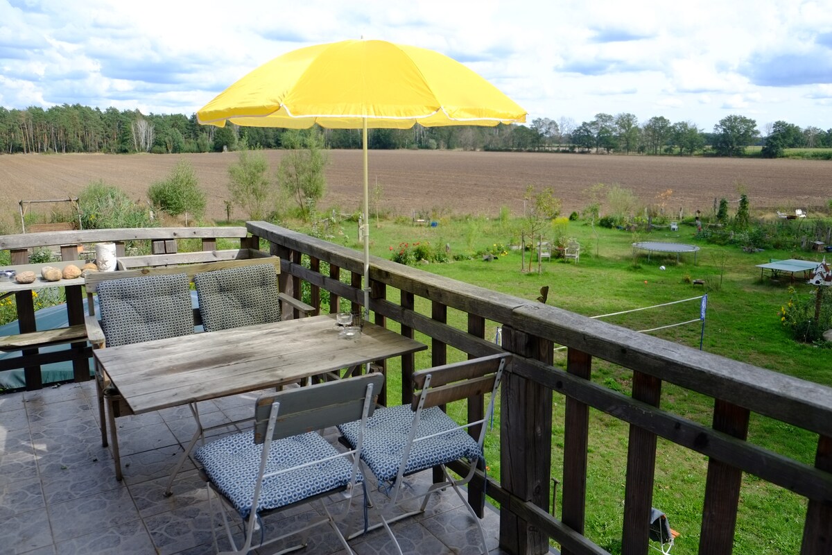 Usred šume, na čistini 3 km od prelijepog sela Gartov, nalazi se naše posebno utočište. Ako tražite mir i tišinu u prirodi i cijenite jednostavne i dobre stvari, na pravom ste mestu. Stara zgrada od pola drveta, bivša štala, renovirana je sa visokim kvalitetom i održivim prirodnim materijalima. Glineni gips na zidovima i šporet na drva garantuju odličnu unutrašnju klimu, a šetnja u saunu na drva obećava apsolutno opuštanje!