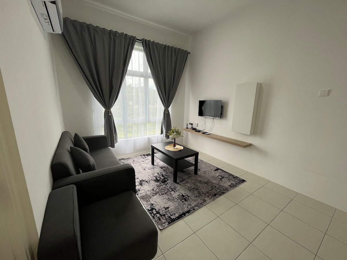 Udoban i udoban sa pogledom na Ipoh, kondominijum sa apartmanom sa 3 spavaće sobe. ***JEDAN (1) besplatan osigurani parking, dok će drugi automobil morati da parkira pored puta u blizini stambenog prostora (parkirajte na sopstvenu odgovornost).*** *Pješice do restorana, prodavnice 7-Eleven i druge praktične prodavnice. U blizini turističkih mjesta: *Železnička stanica, 10 minuta *Autobuska stanica 17 minuta * Noćna pijaca Ipoh 8 minuta *Gerbang Malam 8 minuta *Mural's Art Lane / Concubine Lane 8mins *Ipoh Old Town 9mins *UniKL 5 minuta *Stadion Ipoh 4 minuta