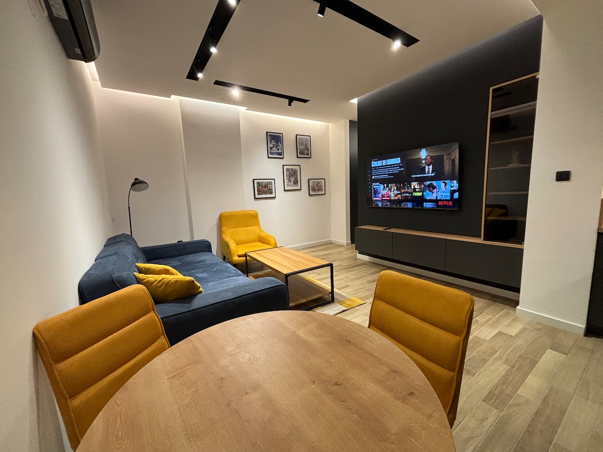 Ovaj elegantni smještaj je savršen za grupna putovanja. Stan se nalazi na idealnoj lokaciji u najzelenijem i najljepšem području. Ima 80 m2, dvije spavaće sobe, kupatilo, toalet, dvije terase i besplatno parking mjesto. U zgradi možete pronaći apoteku koja radi non-stop, mnogo supermarketa, kafića, banaka, više od dva bankomata. Udaljen je 700 metara od centra grada, manje od 10 minuta hoda od reke. Sva važna mjesta u gradu su vrlo blizu. Postoje dvije autobuske i taksi stanice.