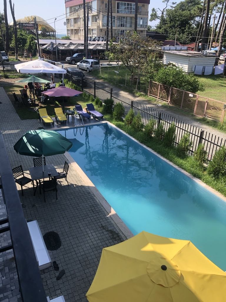 Set in the center of Ureki, 50 meters from the Black Sea, Blue Horizon Apartments offer a haven of tranquility and luxury. Three bedrooms with double beds; three bathrooms with a shower, towels, free bath-robes and toiletries; a studio with a comfy convertible sofa, a kitchen with a refrigerator, a gas stove and all the necessary tableware. Free wi-fi, air conditioning and flat screen full smart TV with cable channels in every room. A Beautiful garden with a big pool and free parking. Welcome!