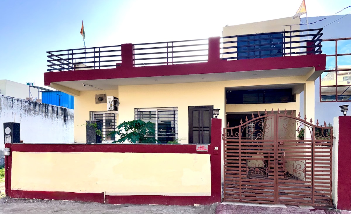 Smještena u blizini golf terena Ext Road, luksuzna vila sa 4 spavaće sobe i mnogo zelenila. Ima potpuno opremljenu kuhinju, dnevnu sobu, trpezariju i luksuzne sadržaje kao što su televizori od 65inča, sto za snooker, sto za snooker, Karrom, tabelu sa kartama i druge igre. Opustite se u dvorištu sa sadržajima za roštilj na spoljašnjim vratima ili se igrajte, badminton, mini fudbal, mekani kriket. CCTV, WI-FI, parking, rezervna snaga su uključeni.